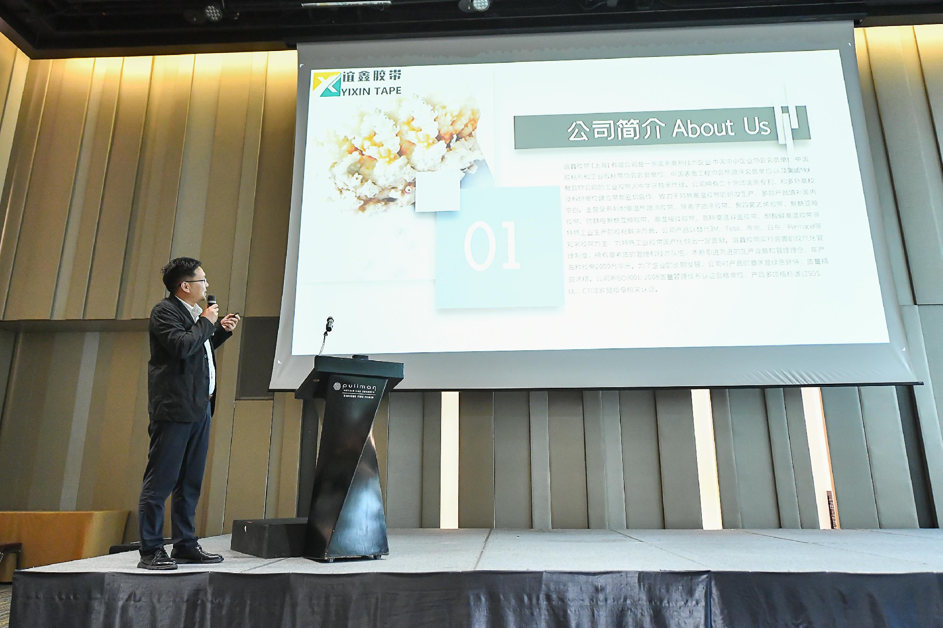 誼鑫膠帶(上海)有限公司總經理饒凱舟在本次大會發言,向大會展示了誼鑫膠帶所有應用的最新技術。