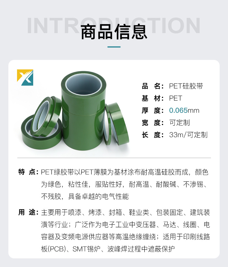 PET綠色耐高溫硅膠帶耐酸堿耐候噴涂烤漆防水遮蔽保護(hù)膜膠帶